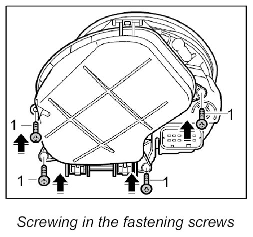 2. Insert the control unit in the headlight cap and screw down with both fastening screws -1-.