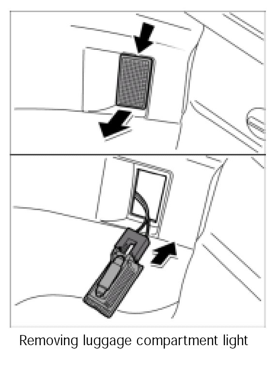 2. Pull off plug on luggage compartment light and remove luggage compartment light.