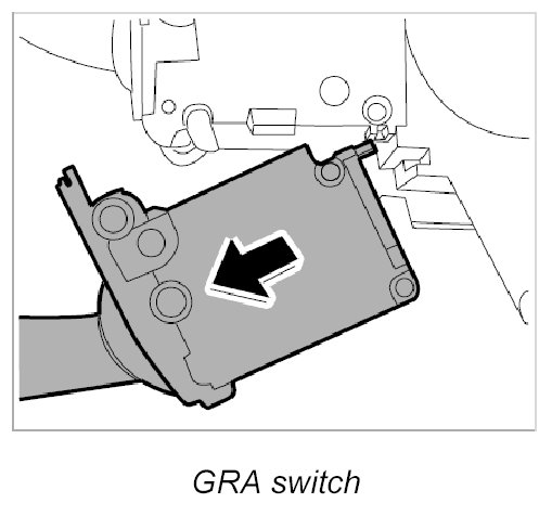 4. Pull the GRA switch -B- downward and disengage.