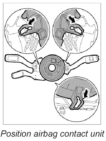 - To position the airbag contact unit in the central position, press the locking element and turn the rotor carefully to the left as far as it will go.
