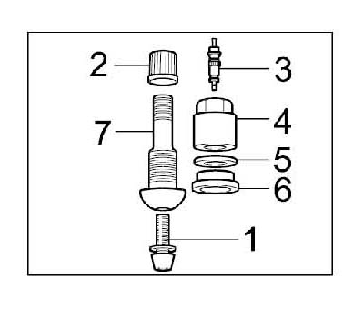 Carry out the tightening procedure to the specified torque for the valve in the rim once only. Remove the assembly pin after fitting the valve. The tire can be damaged if the assembly pin is left in the valve.