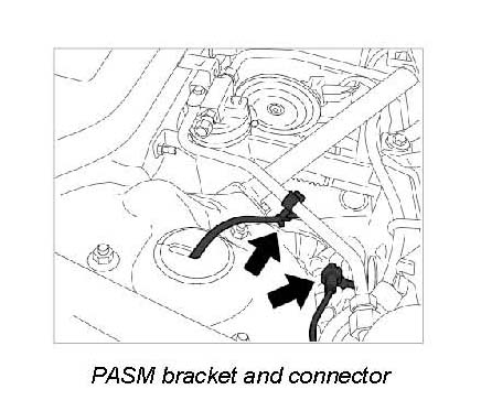 7. Loosen cover over piston rod (at spring strut). For PASM spring struts, carefully disconnect the connecting cable at the connector and unclip it from the bracket -arrows-.