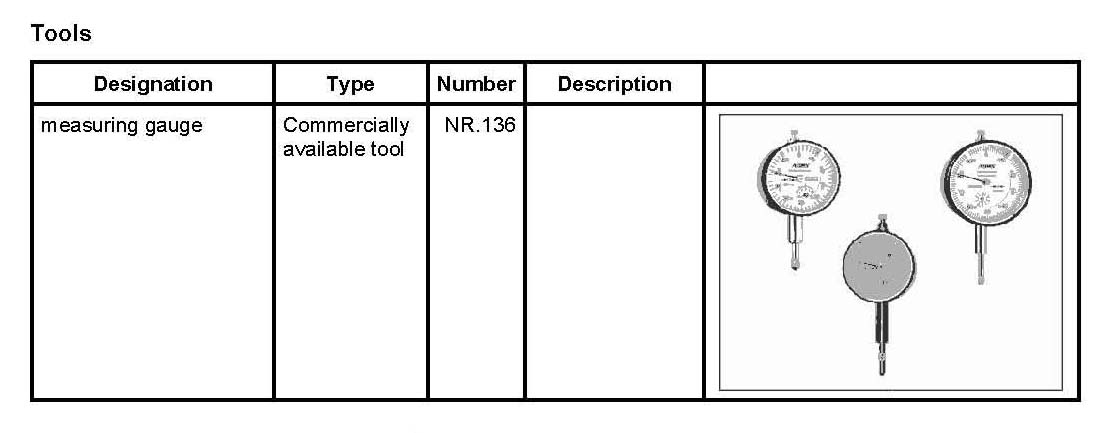 ^ Use a tire measuring gauge, e.g. measuring gauge NR.136 to check radial and lateral runout values on wheels without flat spots. Values of less than 1.0 mm are desirable - around 0.5 mm would be better.