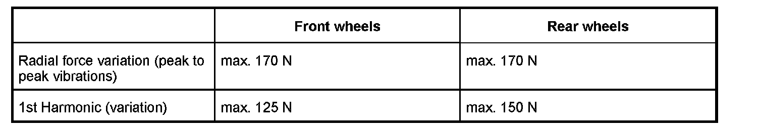A new tire must be fitted if the radial force variation cannot be reduced to the values listed in the table.