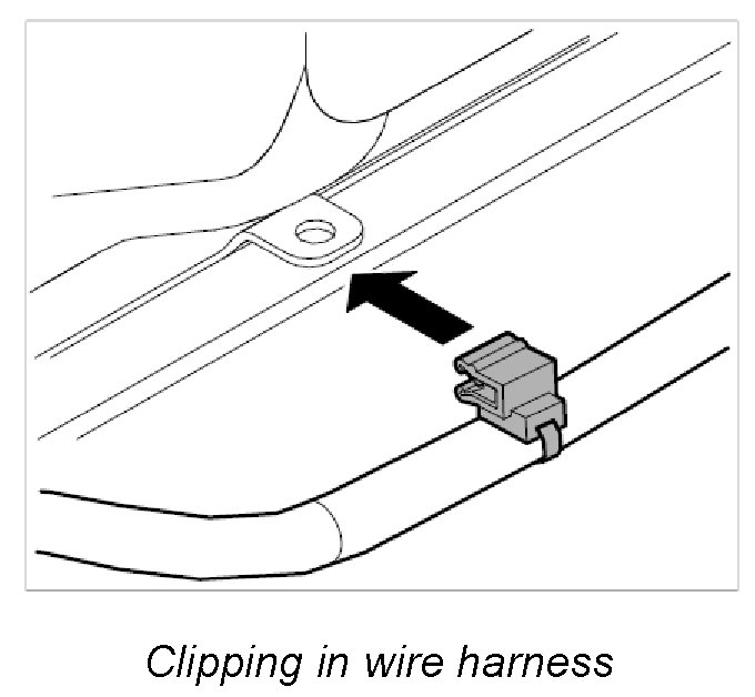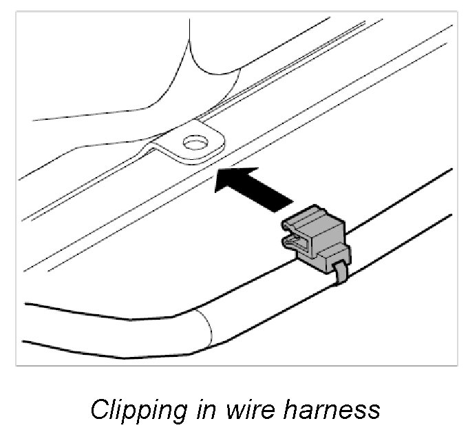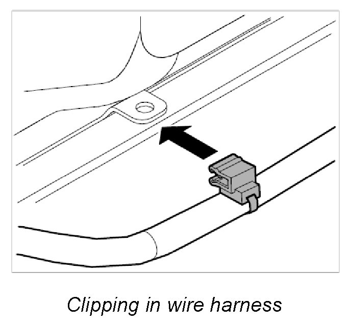 17. Clip in wire harness for end plate under windscreen at the three retaining clips -arrow-.