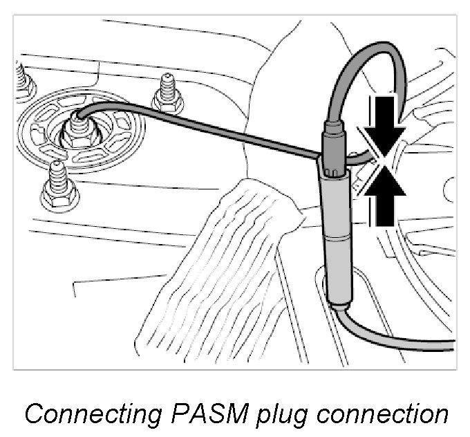 10. Connect plug connections for PASM, front left and right -30 and 31- until they are felt to engage.