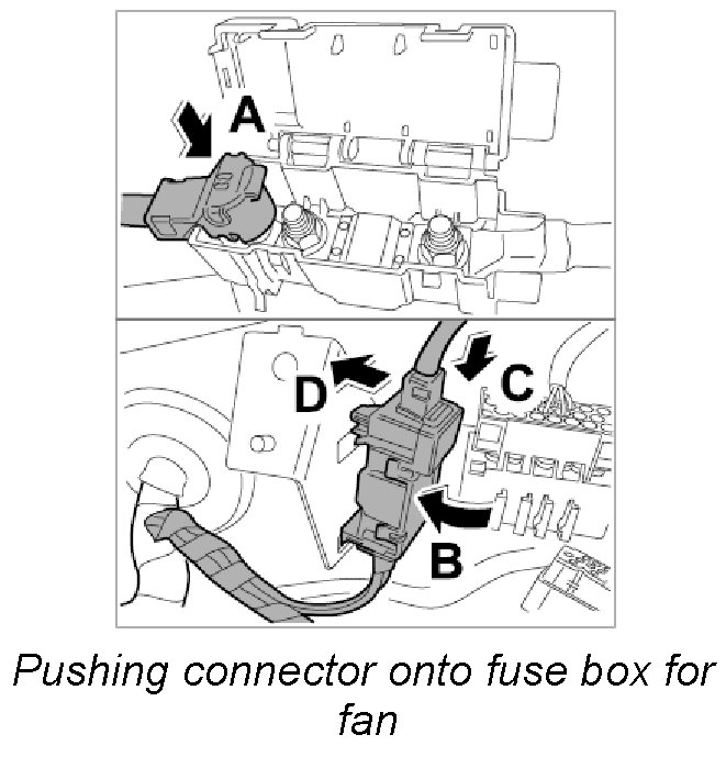 33.1. Push connector onto fuse box for fan -Arrow A-.