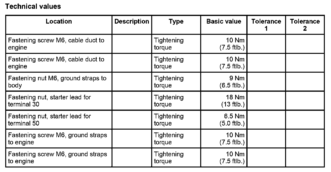 23. Position starter lead for terminal 30 and terminal 50 -30 and 31- and secure with fastening nut. Tightening torque: 18 Nm (13 ftlb.) Tightening torque: 6.5 Nm (5.0 ftlb.)