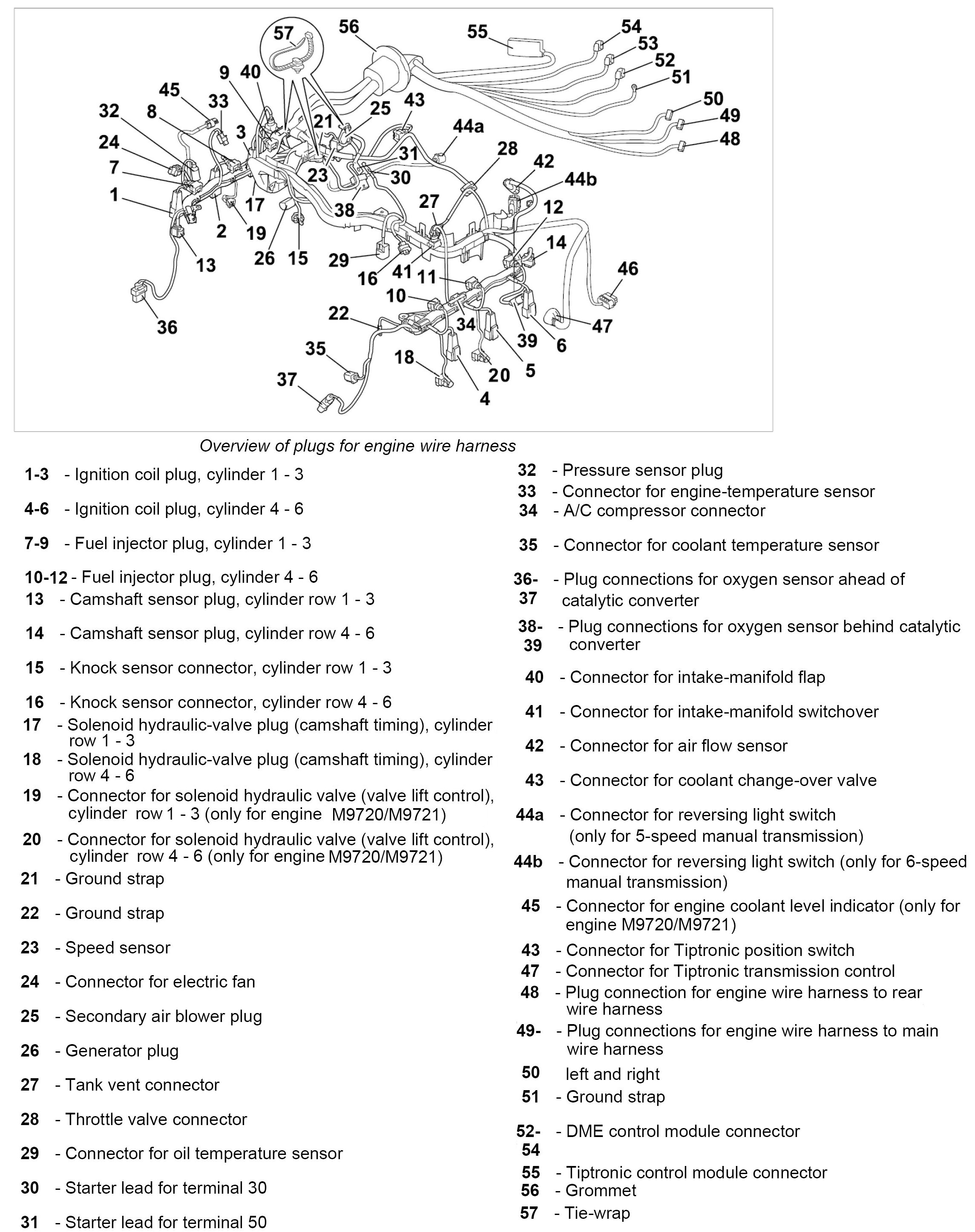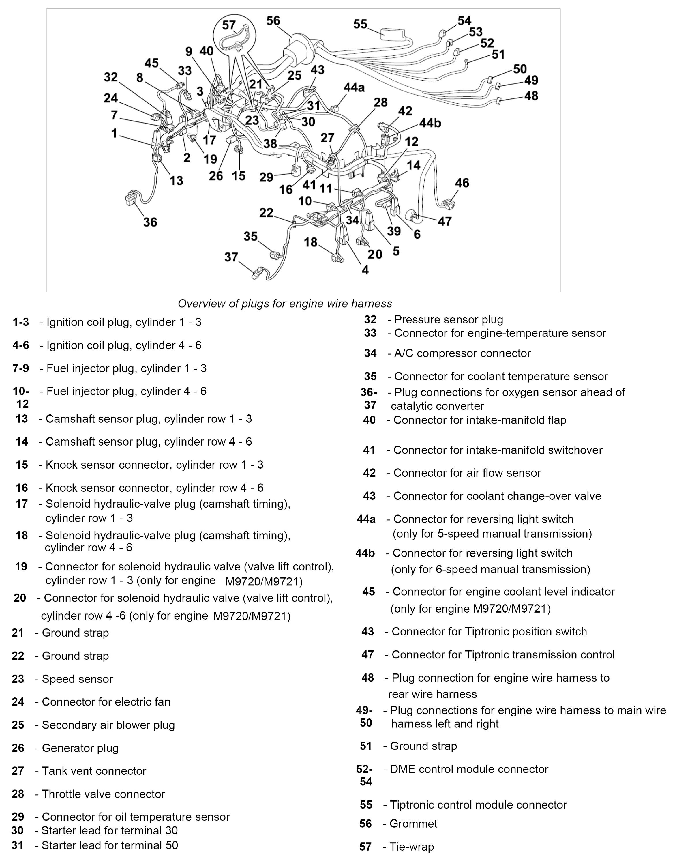 30. Remove grommet -56- and pull through the engine wire harness in direction of engine compartment.