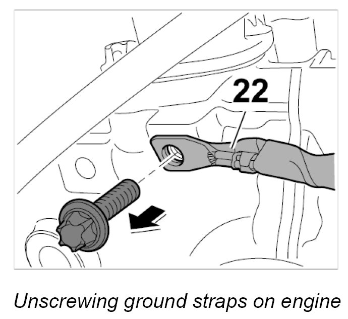 6.1. Unscrew fastening screw and remove ground straps -22-.