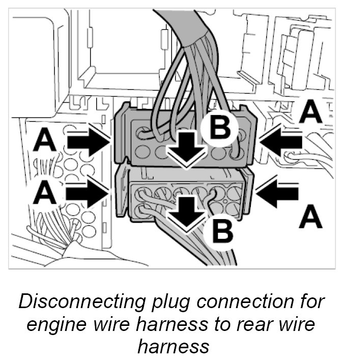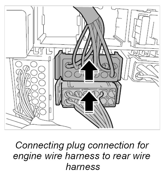 10.1. Connect plug connections for engine wire harness to main wire harness left and right until they are felt to engage.