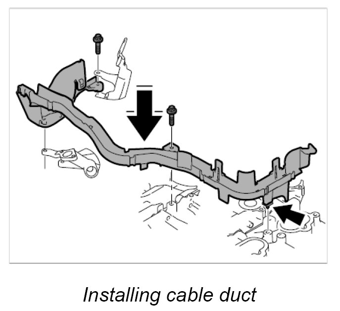 2.1. Clip in cable duct -arrow- and secure with the fastening screws. Tightening torque: 10 Nm (7.5 ftlb.)