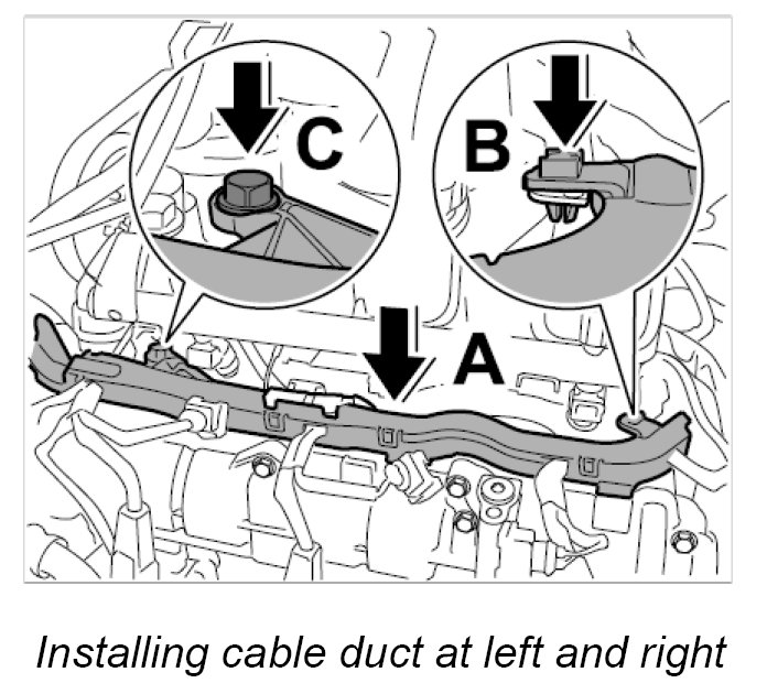 3.2. Secure cable duct left and right with fastening screw -Arrow C-. Tightening torque: 10 Nm (7.5 ftlb.)