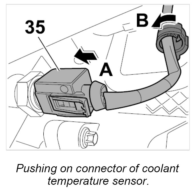 20.1. Push on connector of coolant temperature sensor -35- -Arrow A- until it is felt to engage.