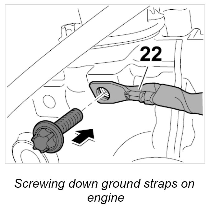 29.1. Position ground straps -22- and screw down with the fastening screw. Tightening torque: 10 Nm (7.5 ftlb.)