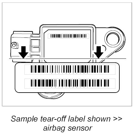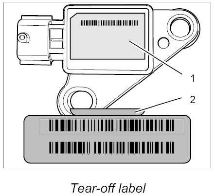 - If a new component (e.g. sensor, airbag control unit, airbag unit) of the airbag system has to be installed, the new component will be supplied with a barcode sticker (tear-off label).