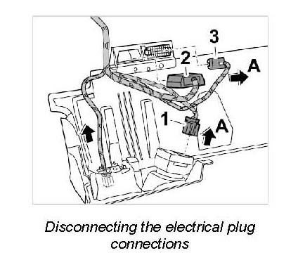 6. Release plug connections -1, 2, 3- and remove -Arrows A-.