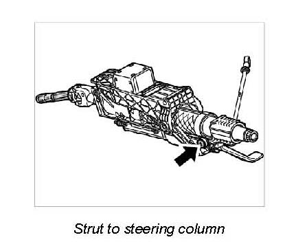 2. Loosen strut on retaining frame (arrow shows mount on steering column).