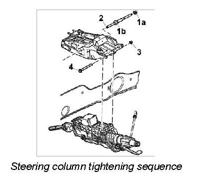 2. - Lock nut right -1a- (tightening torque 10 Nm (7.5 ftlb.). Then lock nut for steering column -1b- (tightening torque 46 Nm (34 ftlb.)).