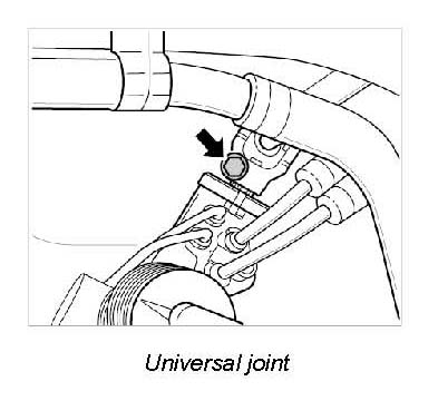 1. Loosen universal joint (steering shaft) on steering gear -Arrow-. To do this, take out the clamping screw and slide the joint upwards.