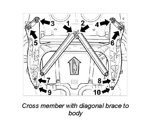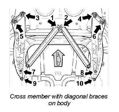 11. Lower front cross member slightly (approx. 50 to 60 mm).