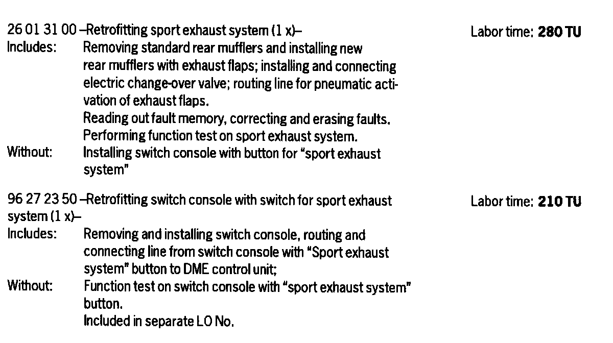Engine power and exhaust behavior of the vehicle are not affected. The sport exhaust system is also available as a factory installed option for new vehicles by requesting optional equipment "XLF".