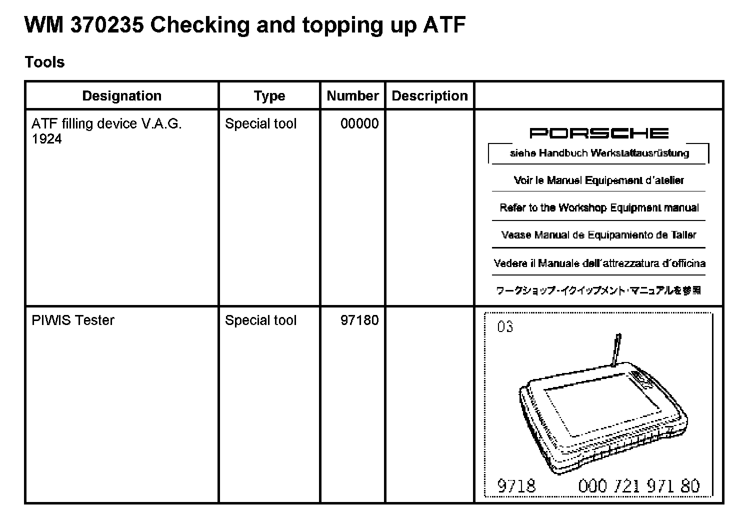 Fill only with ATF approved by Porsche. See Spare Parts Catalogue.