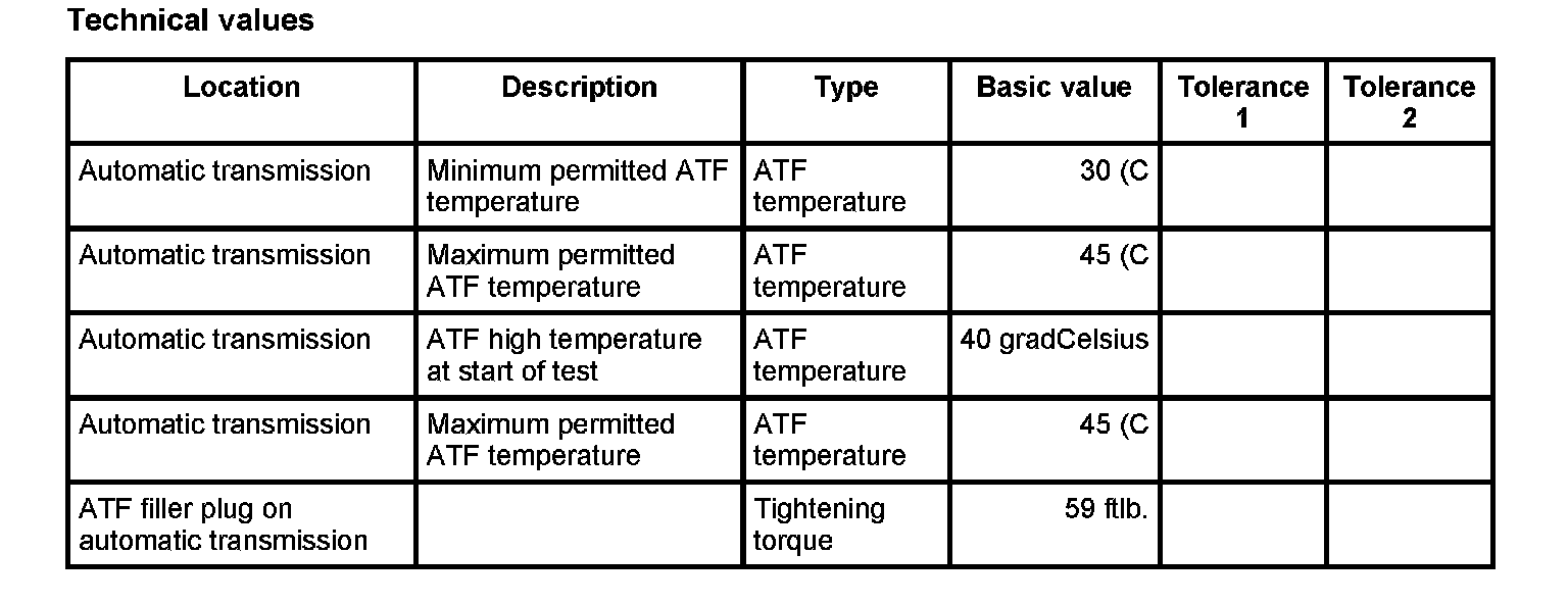 The ATF temperature at the start of testing must not be higher than -> ATF temperature: 40 gradCelsius.