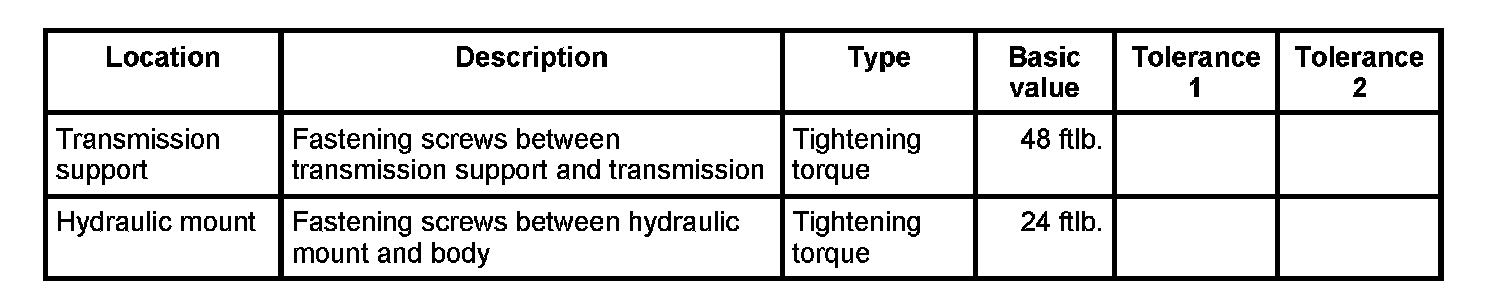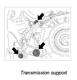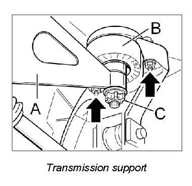 The fastening nuts of the transmission support must never be loosened at the hydraulic mount because otherwise the transmission brackets will be damaged.
