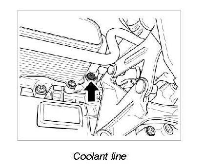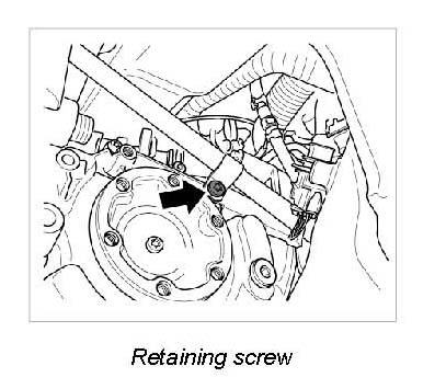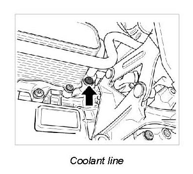 5. Screw in retaining screw between the transmission and the coolant pipe.