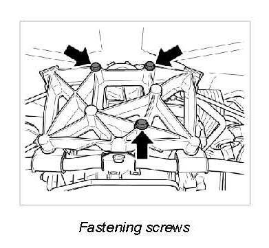 3. Install engine mount for exhaust system and tighten fastening screws between transmission and engine mount for exhaust system.