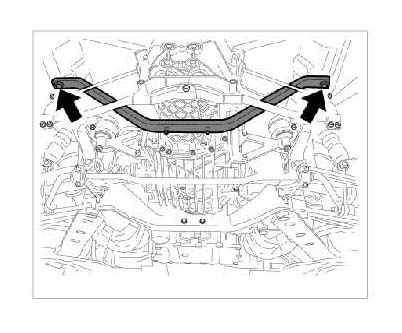 3. Install exhaust system mount and tighten fastening screws between transmission and exhaust system mount.