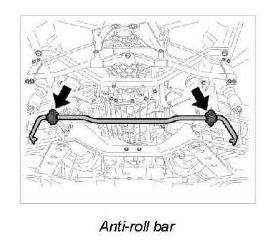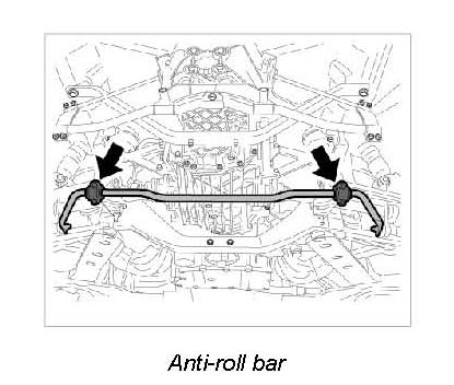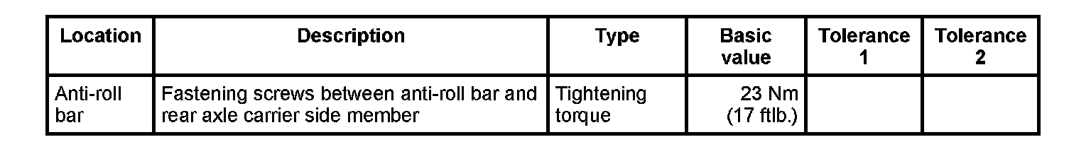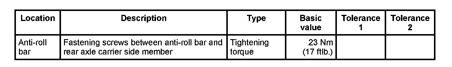 11. Screw in fastening screws between anti-roll bar and rear axle carrier side member.