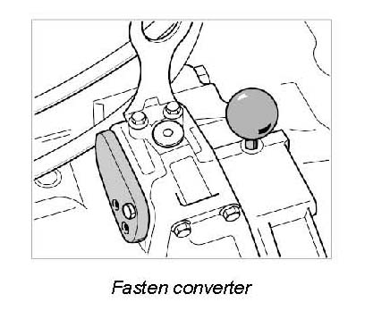 11. Screw in converter fastening screws with 6mm hexagon socket through the openings in the assembly aid 9596.