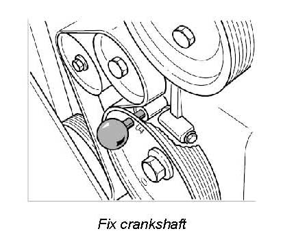 ^ The crankshaft is fixed in a defined position by inserting the fixing pin.
