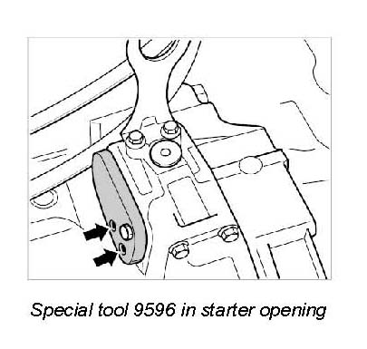 1. Pull fixing pins (long) 9595/1 out of the opening in the transmission housing.