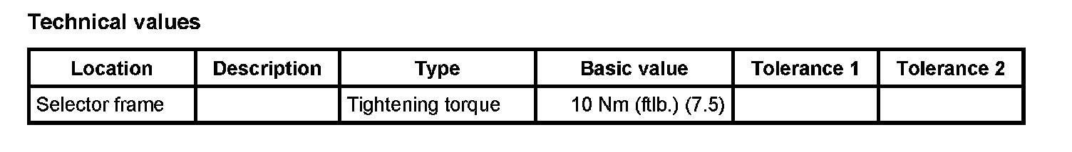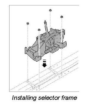 Before starting to install the selector frame, ensure that the transmission and selector frame are in parking position.