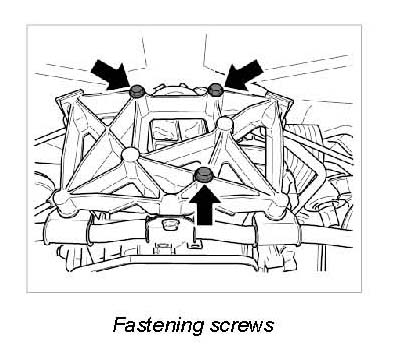 5. Install engine mount for exhaust system and tighten fastening screws between transmission and engine mount for exhaust system.