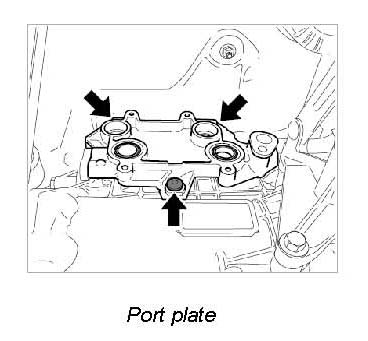 7. Unscrew fastening screws between port plate and transmission housing and remove port plate.