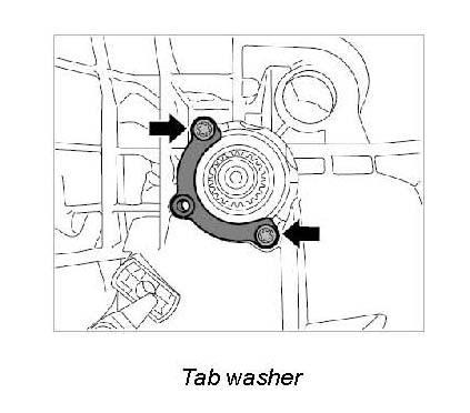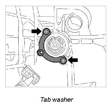 2. Unscrew retaining screws for tab washer.