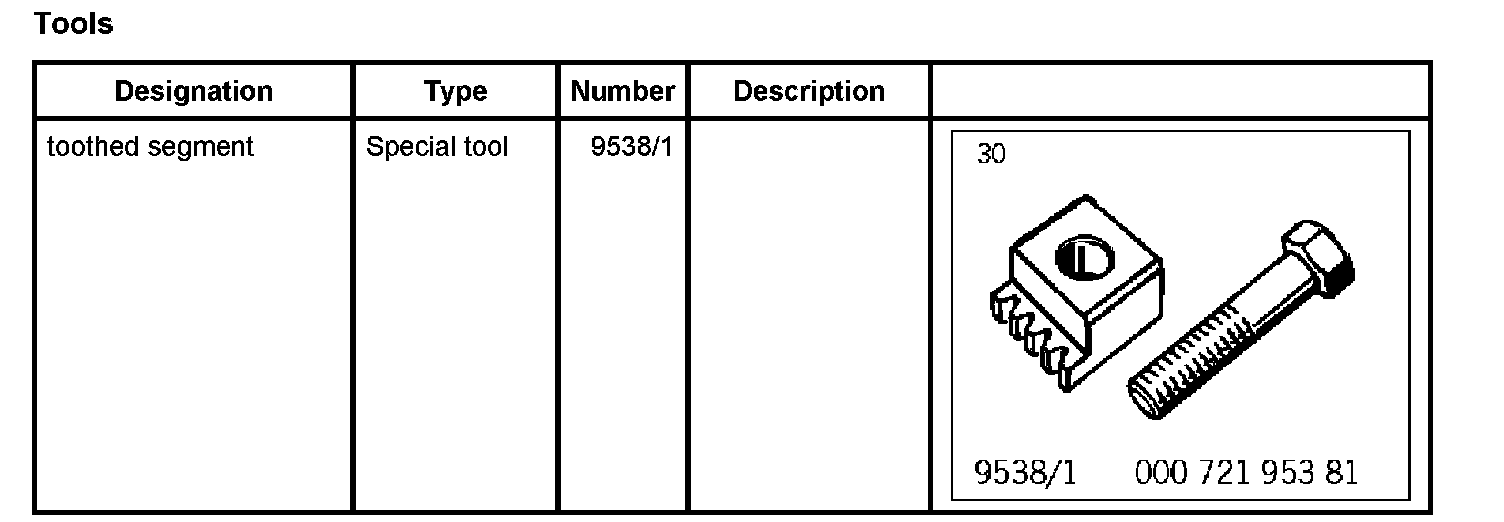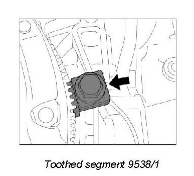 1. To counter, fit toothed segment 9538/1 to the crankcase using an M12 x 50 hexagon-head bolt (fine thread).