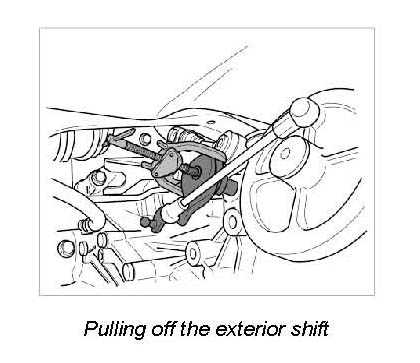 2. Pull off exterior shift using Schremm 48-2 puller 00000 from shifting shaft.