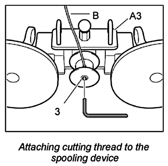 2. Insert cutting thread -B- into the bore on the spooling device -A3-.