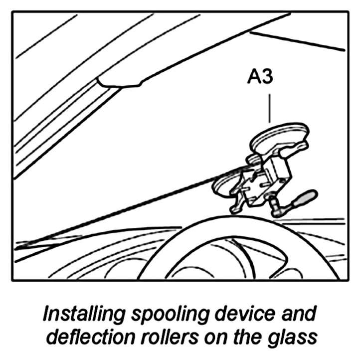 2. Press spooling device -A3- with the fastening intakes firmly against the glass.