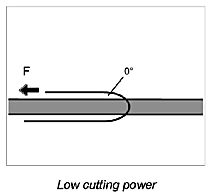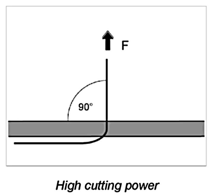 Unfavorable angle (strong traction required)
