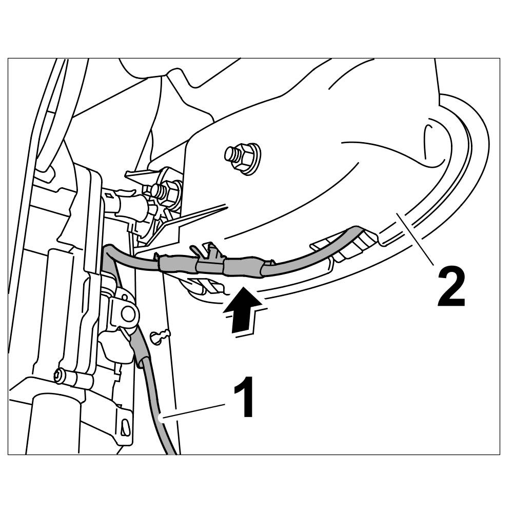 1. On the bottom part of door opener -2- clip in the electrical line -1-.