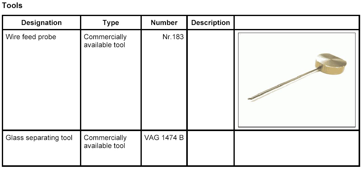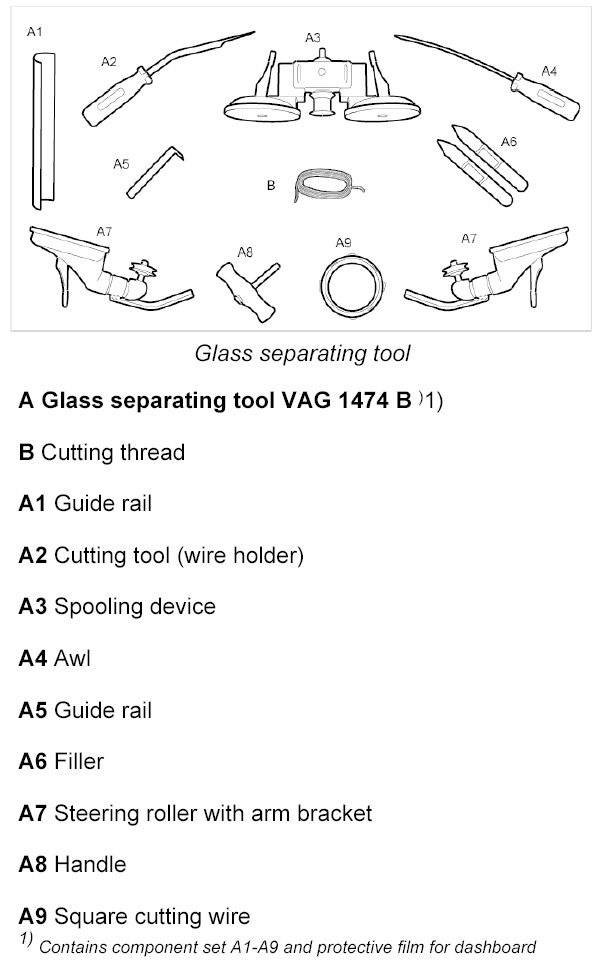 - The following instructions describe the general procedure for removing car windows with the glass separating tool VAG 1474 B.