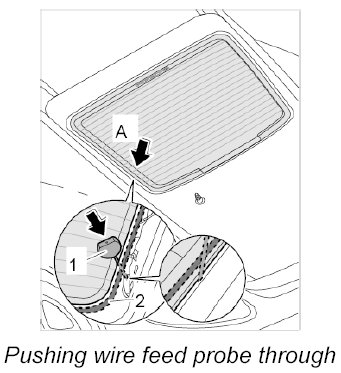 INFORMATION: To prevent damage, make sure that the wire feed probe is inserted at an angle when pushing the bead of adhesive through.