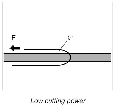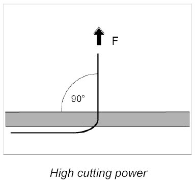 INFORMATION: The power for separating the glass is weaker when the cutting thread is deflected to its maximum point. An angle greater than 90° should be avoided.