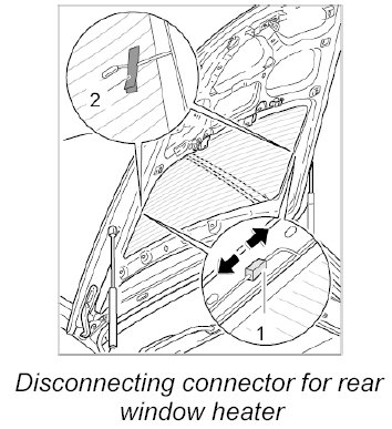 2. Pull off the connector for the rear window heater -1- on the rear window.